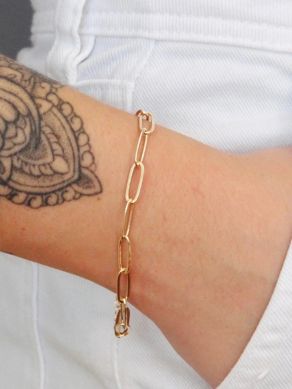 Pulseira de finos elos entrelaçados e delicados, perfeita para quem busca elegância e ousadia em um único acessório.